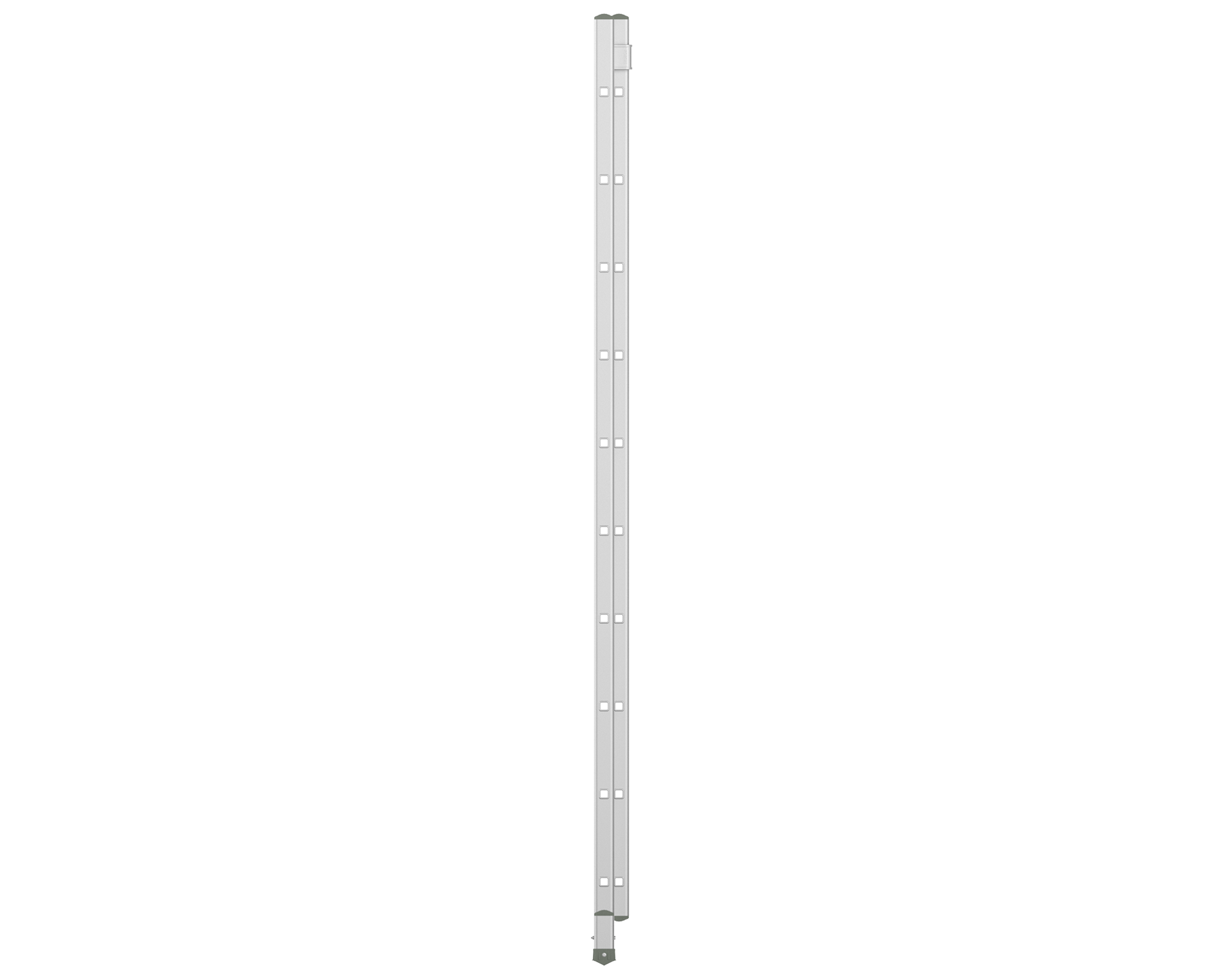 Zweiteilige Hand-Schiebeleiter aus Aluminium. Sprossenabstand 280 mm – Sprossen 25 x 25 mm – Sicherheitsverriegelung – Stranggussprofil – nicht abfärbende, rutschfeste Fusskappen – Modelle mit 8 bis 13 Sprossen inklusive Aluminium-Stabilisator (zu montieren) mit rutschfesten Endkappen.Verfügbar mit 6 bis 13 Sprossen für Zugangshöhen von 1,95 bis 6,70 Metern.