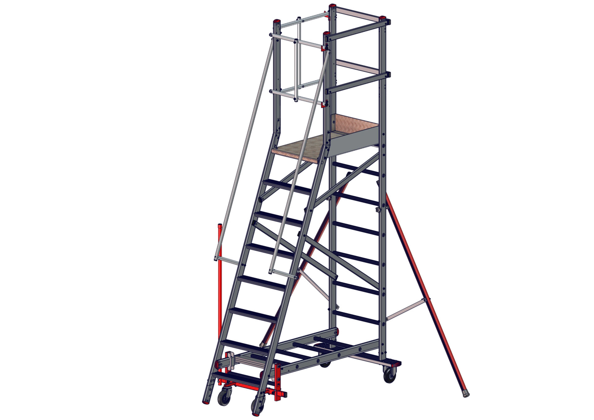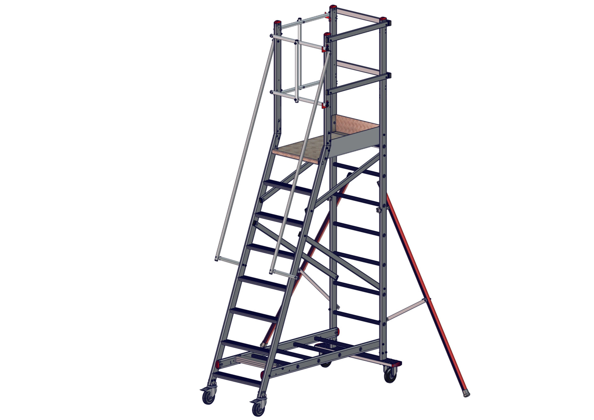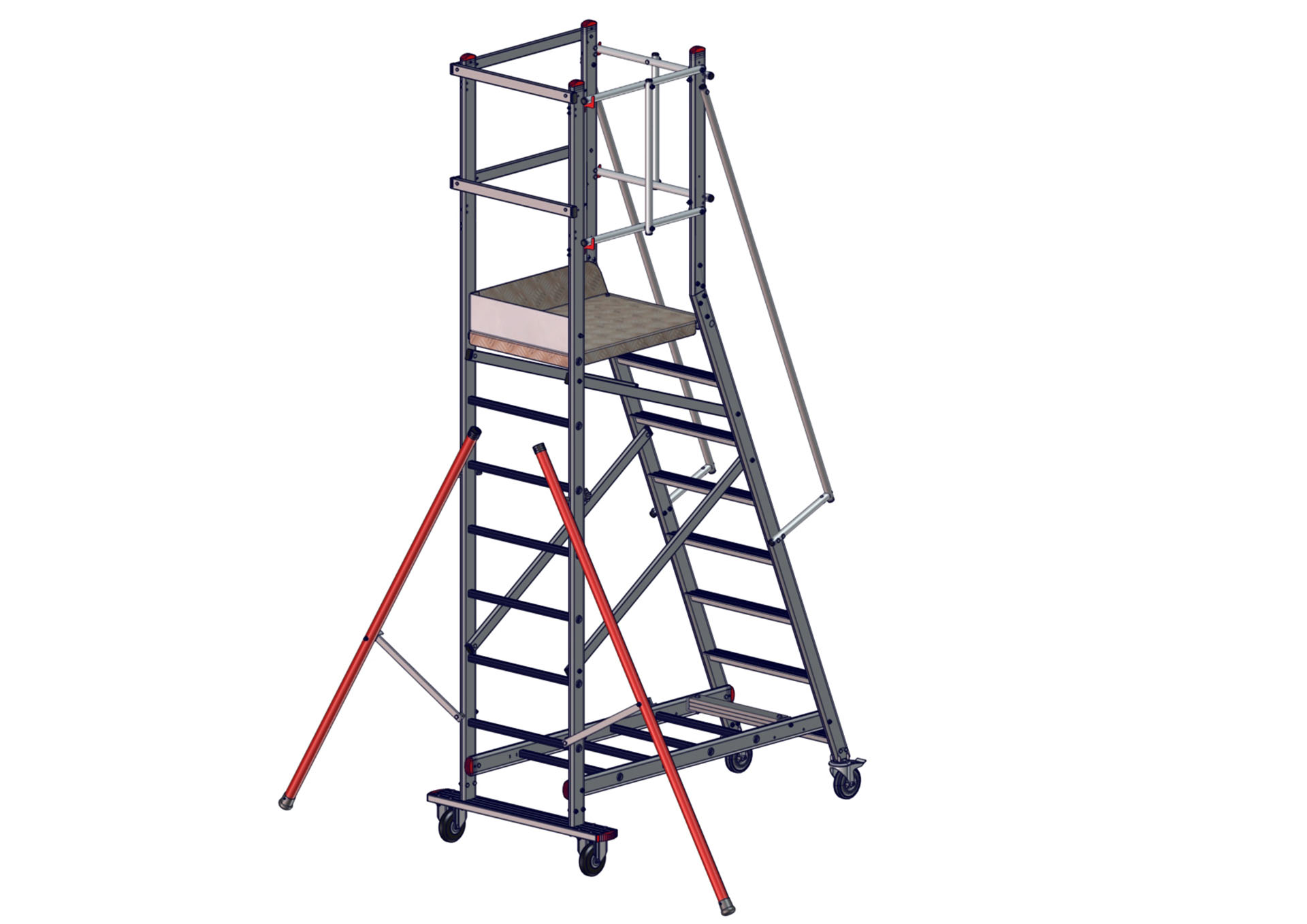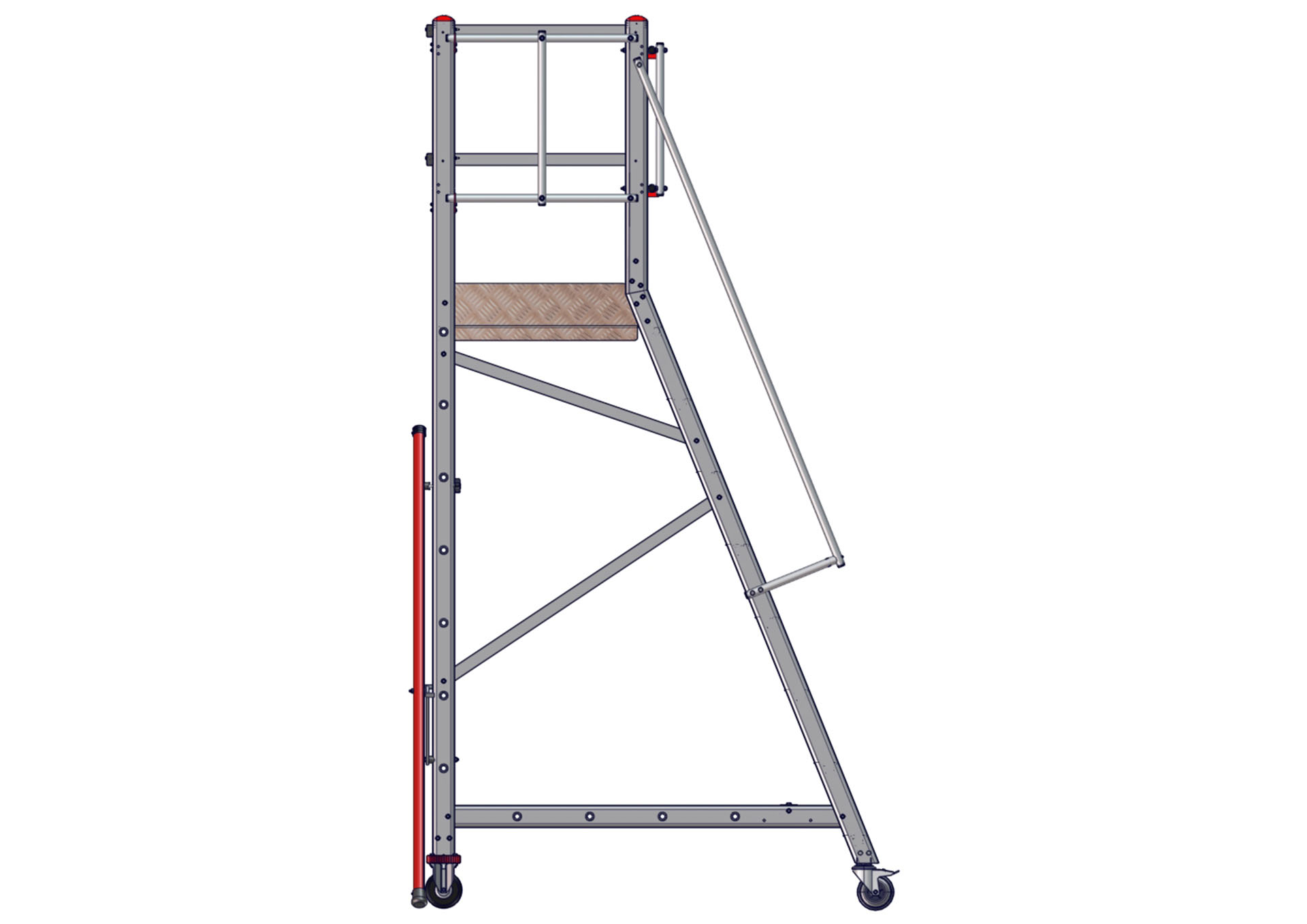 Rollbare Monoblockpodestleiter EMG 68 – Ausstieg links